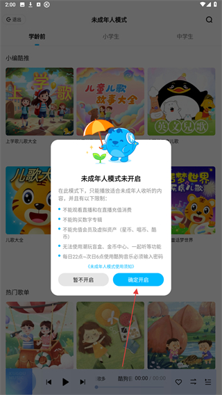 酷狗怎么开启未成年模式