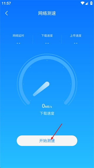 2、在网络测速页面点击开始测速按钮,启动网络速度的检测流程。