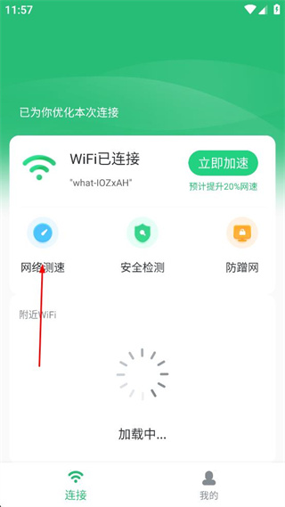 1、打开智享WiFi管家的连接界面,找到网络测速选项,点击进入测速页面。