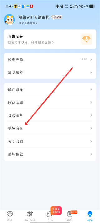 1、打开WiFi万能钥匙,在我的页面中,点击更多设置。
