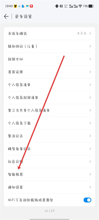 3、进入更多设置页面之后,找到并点击智能推荐选项。