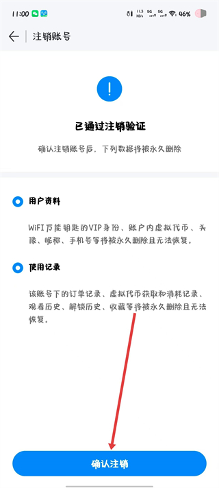 4、通过验证之后,在界面下方点击确认注销,即可成功注销。