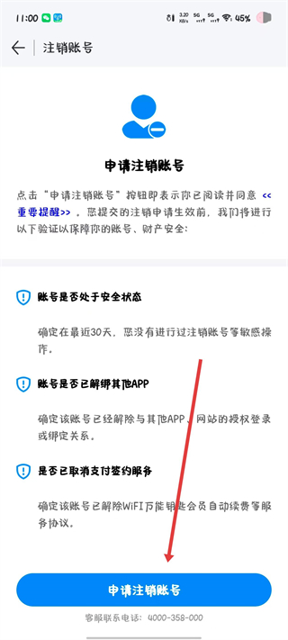 3、进入注销账号的申请页面之后,点击申请注销账号。