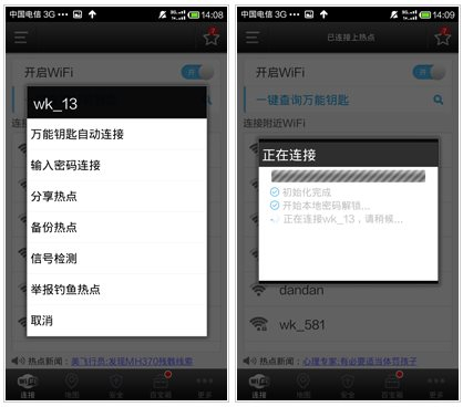 a:wifi万能钥匙是一款android手机必备的搜索连接管理wi-fi热点的工具。内置逾万条的wi-fi热点数据;用户可分享使用已知的wi-fi热点信息;智能关闭wi-fi热点功能非常省电;支持网页认证一键连接,方便省心。