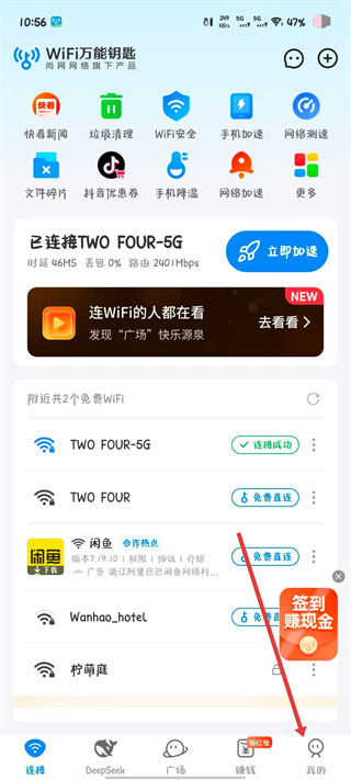 1、打开WiFi万能钥匙APP,点击右下角我的。