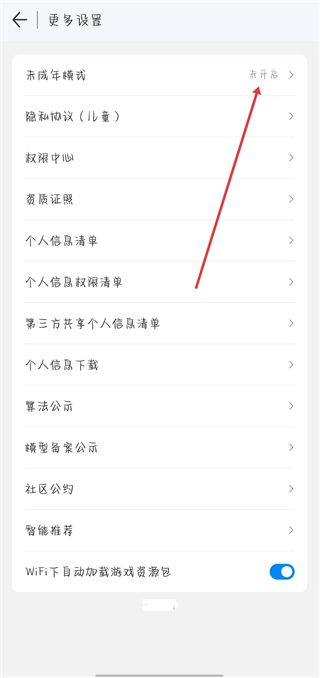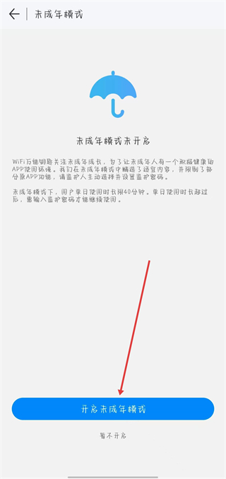 3、在未成年模式页面,点击开启未成年模式按钮。