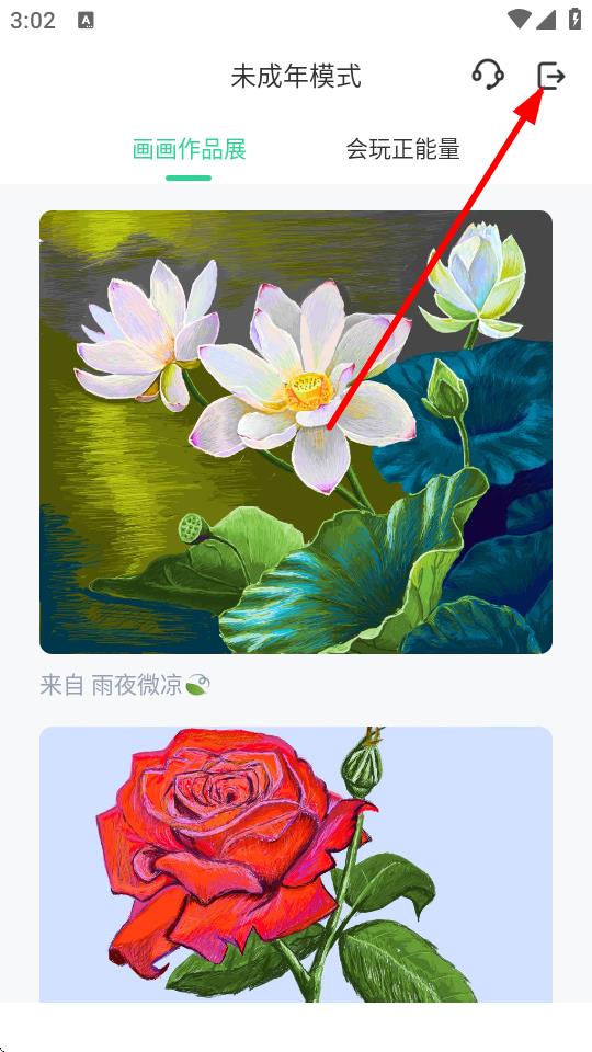 1、进入会玩App的未成年模式页面,点击右上角的展开图标。