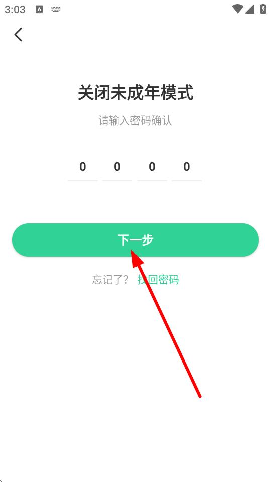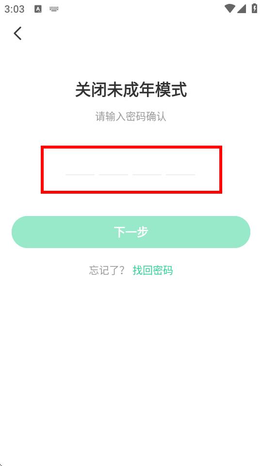 3、在关闭未成年模式页面的密码输入框,输入设置的密码。