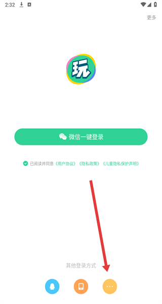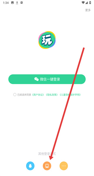 2、在登录界面点击下方黄色“更多”按钮,可以选择其他登录方式。
