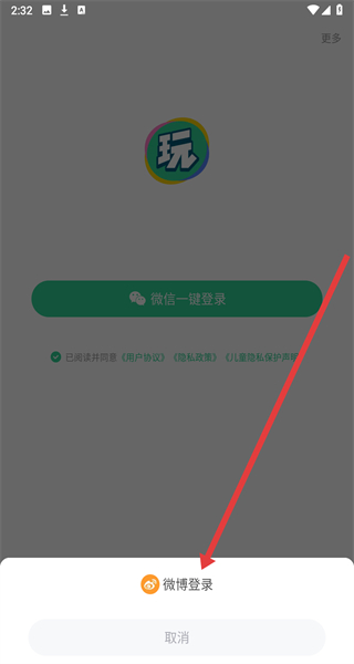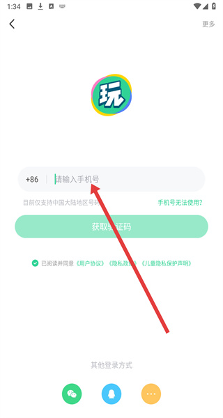 1、点击“用户协议与隐私政策”弹窗的“同意”,进入会玩APP登录界面。