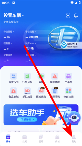 1、打开解放行司机版,在首页点击底部我的,进入个人页面。