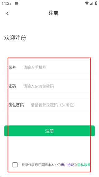 4、在注册页面,填写信息并勾选协议后,点击注册完成账号注册。