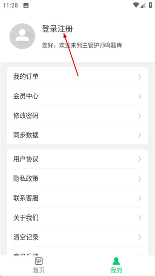 1、在主管护师鸣题库首页,点击底部的我的选项,进入个人中心页面。