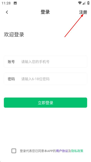 3、在登录页面,点击右上角的注册选项,进入注册页面。