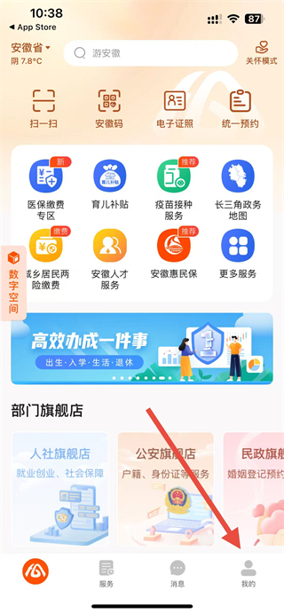 1、打开皖事通app,点击首页底部我的选项,进入我的个人页面。