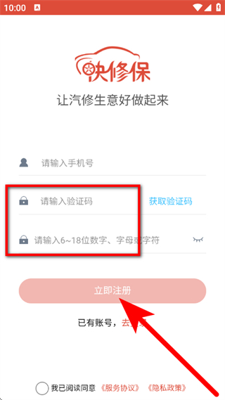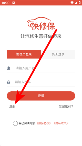 1、打开快修保,弹出提示框,点击同意,进入登录界面。