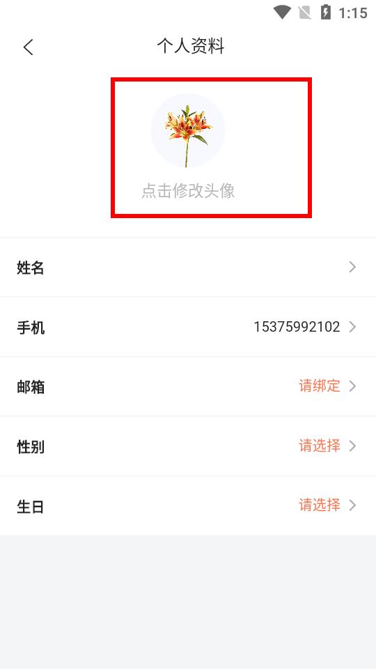 3、在个人资料页面,点击点击修改头像,按提示选择想要设置的头像即可修改头像。