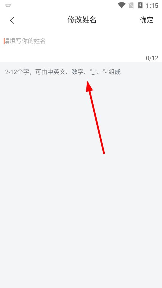 4、在个人资料页面,点击姓名选项,进入修改姓名页面,输入想要设置的名字后,点击确定即可修改名字。