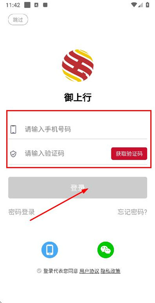 3、在登录页面填写手机号和验证码,勾选协议后,点击登录完成账号登录操作。
