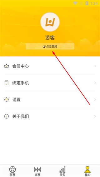 1、打开同道大数据的联赛页面,点击底部导航栏的我的选项,进入个人中心页面。
