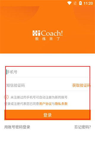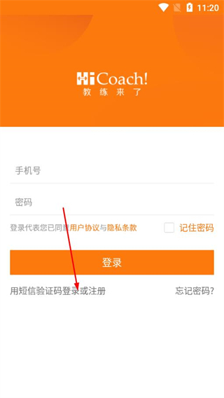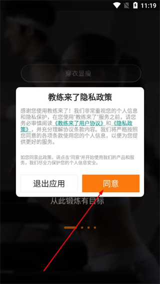 1、打开教练来了app后,在弹出的隐私政策弹窗中点击同意,进入登录页面。