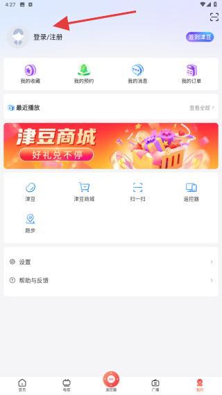 2、在我的页面顶部,用户需点击登录/注册的功能按钮。
