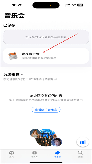 2、进入音乐会的页面内,点击查找音乐会的按钮。