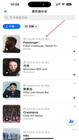音乐雷达怎么查找音乐会的位置
