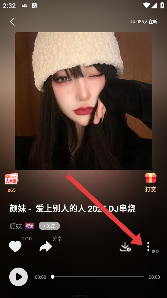 2、在歌曲播放界面,点击更多的按钮,调出更多操作的选项。
