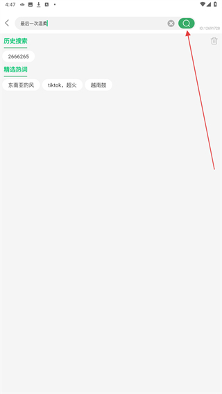 2、在输入框内输入歌曲后,点击右侧搜素的功能按钮。