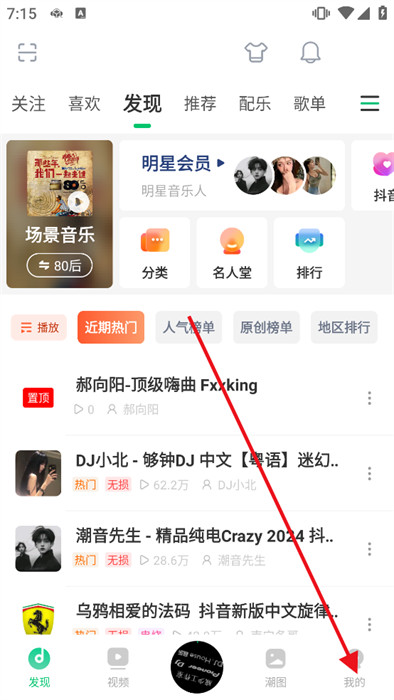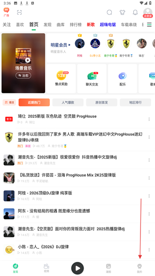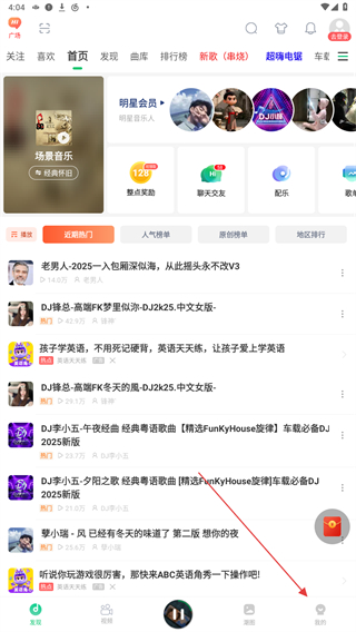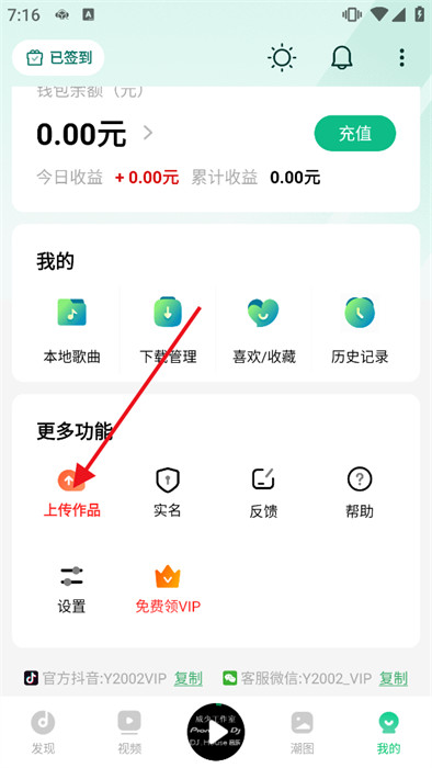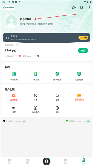 1、启动y2002电音的应用APP,进入首页点击右下我的按钮。