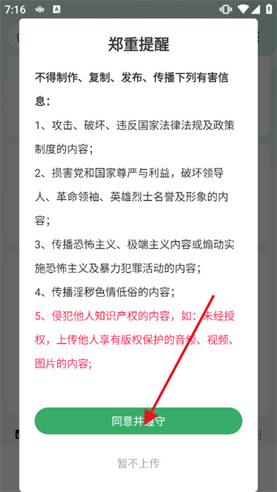 3、紧接着,这里会呈现一些上传作品的注意事项,阅读之后,点击【同意】;