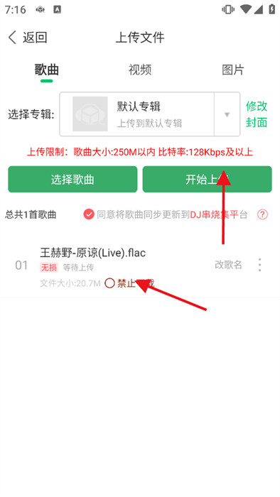 5、最后,可以直接获取到设备内的一些音频文件,上传即可修改文件的页面或者分享给好友。