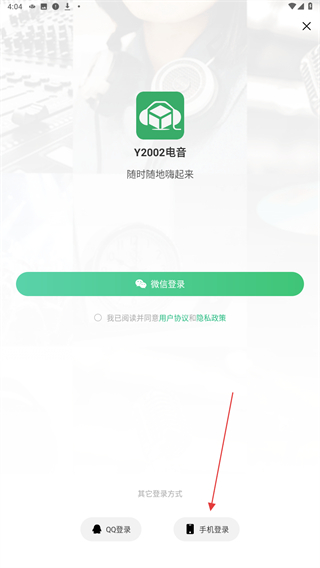 3、在登录的界面内,点击下方手机登录的功能按钮。