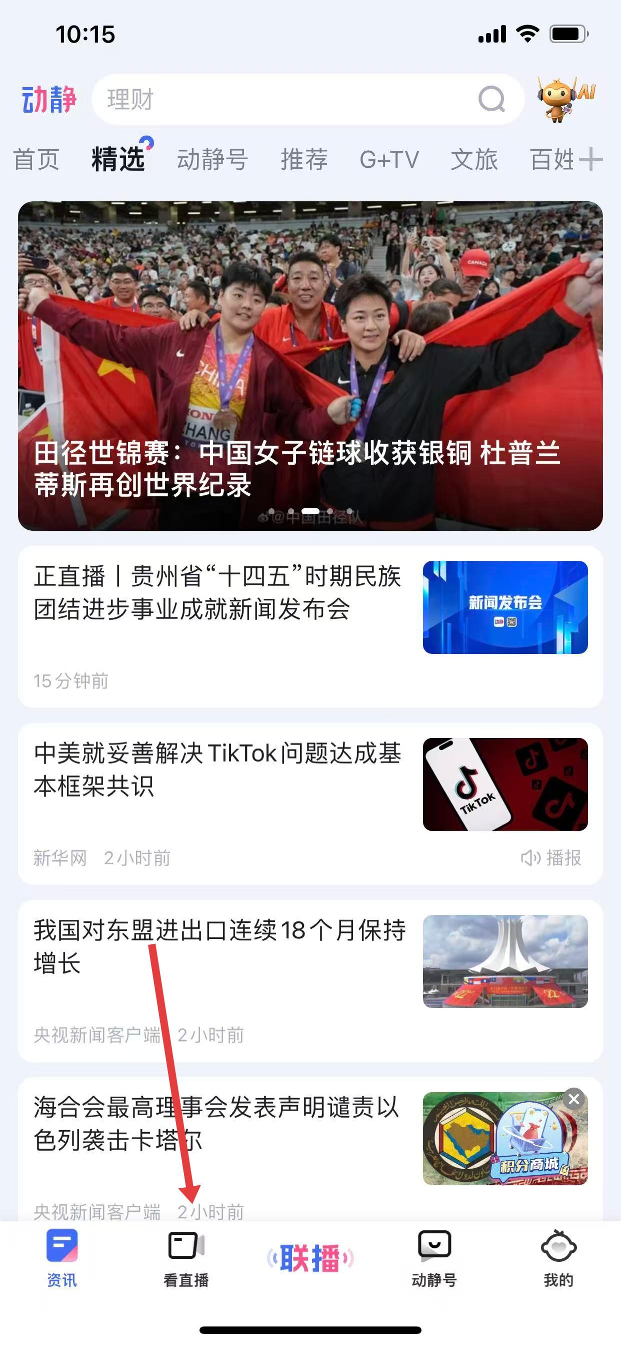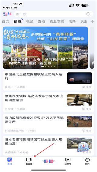 1、打开动静新闻App,点击底部导航栏看直播选项。