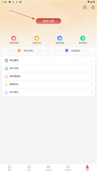 2、在个人中心页面顶部,点击上方登录/注册按钮,进入登录界面。