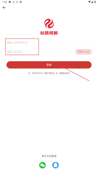 3、在登录界面输入手机号,点击获取验证码,输入后点击登录。