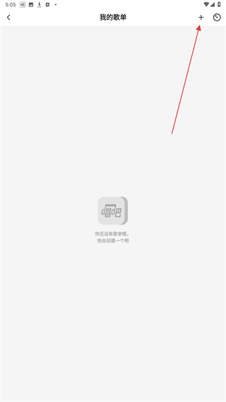 4、进入我的歌单的界面内,点击右上+的功能图标。