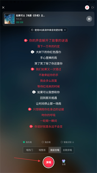 3、选择好演唱的片段后,再次点击下方演唱的按钮即可。