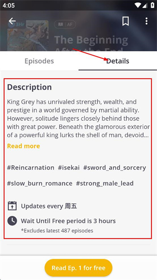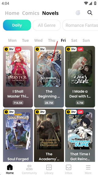 2、在Novels板块的Daily分类下,选择The Beginning相关作品,进入详情页。
