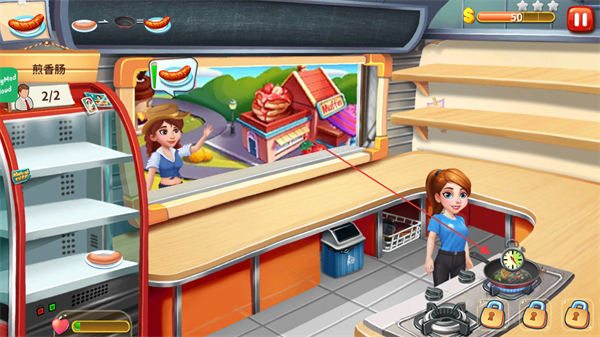1、操作兼顾趣味性与节奏感,点击屏幕即可完成食材处理、烹饪装盘等操作,随着餐厅升级,客人流量增大,需要快速切换操作流程,考验手速与应变能力。