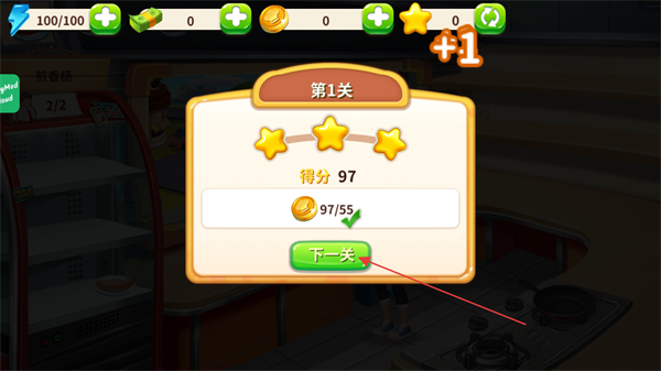 4、完成关卡目标后,点击下一关进入后续关卡,继续提升餐厅经营效率。