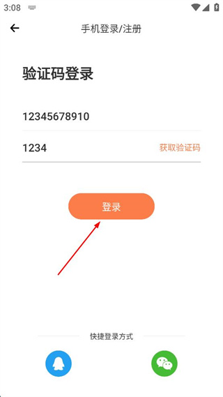 3、进入手机登录/注册界面,在对应输入框填写手机号并获取短信验证码。