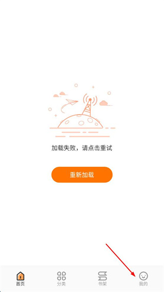 1、打开漫画阅读软件,遇到加载失败提示时点击重新加载,进入主界面。