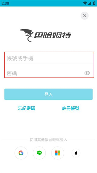 2、在弹出的菜单中选择登入选项,进入巴哈姆特的账号登录界面。