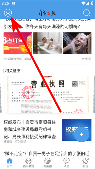 1、打开自贡在线,点击左上角头像图标,进入我的页面。