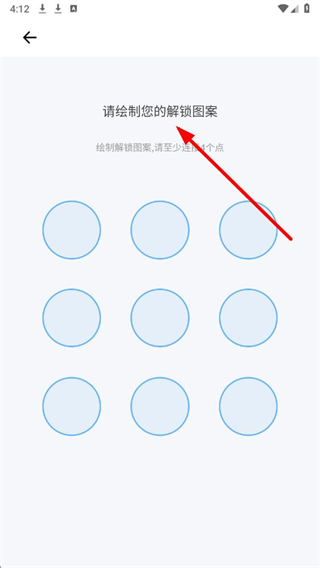 4、在绘制锁屏手势界面,绘制解锁图案,完成锁屏手势的设置。