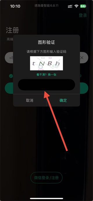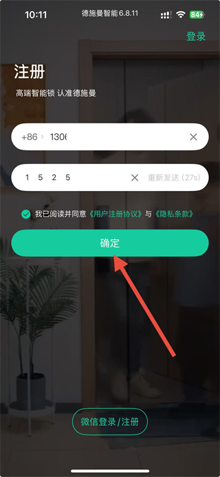 4、在注册页面输入收到的短信验证码,点击确定即可完成注册。