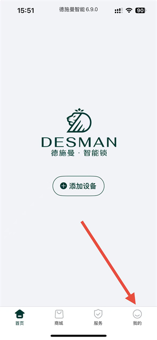 1、打开德施曼智能应用,点击首页底部的我的选项,进入个人界面。