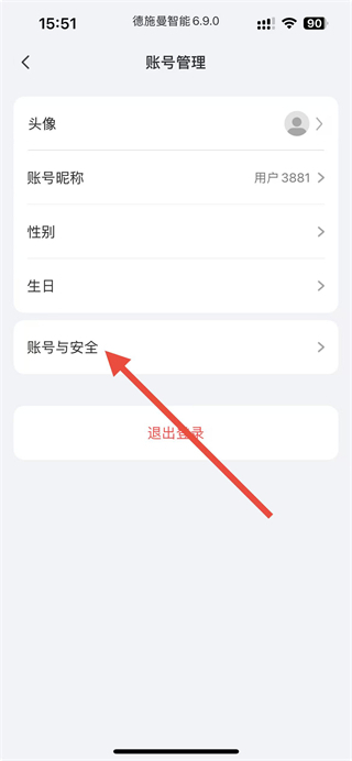 2、在设置页面点击账号与安全选项,进入账号与安全页面。